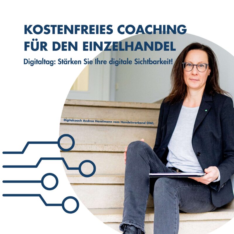Einzelhändlerinnen und Einzelhändler erhalten auf Wunsch kostenfreie, 45-minütige Digitalchecks direkt im Geschäft. Digitalcoach Andrea Haselmann analysiert die Online-Präsenz und gibt praxisnahe Tipps zur Verbesserung der digitalen Sichtbarkeit. Kontaktieren Sie uns für einen unverbindlichen und individuellen Gesprächstermin.