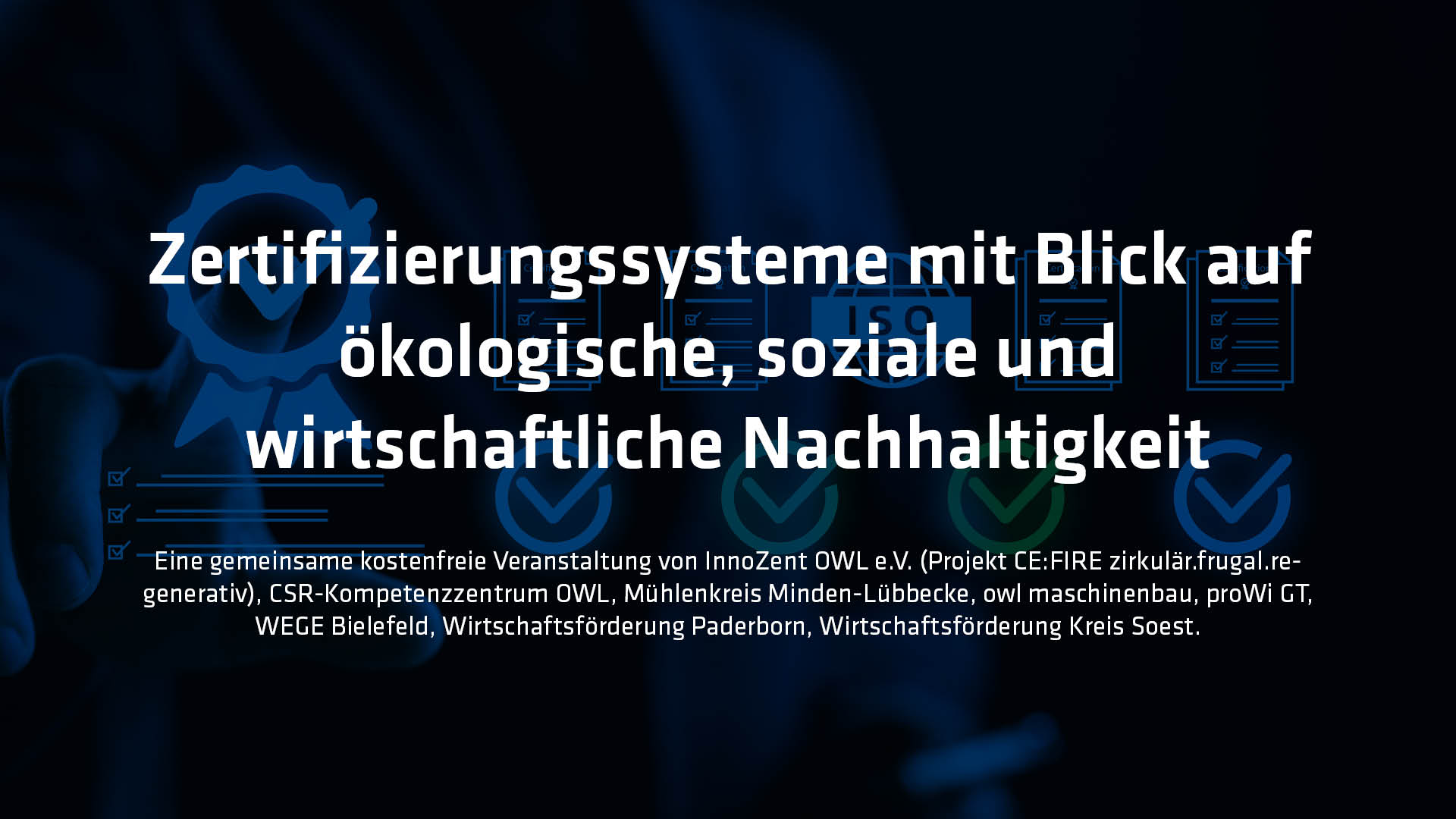 Eine gemeinsame kostenfreie Veranstaltung von InnoZent OWL e.V. (Projekt CE:FIRE zirkulär.frugal.regenerativ), CSR-Kompetenzzentrum OWL, Mühlenkreis Minden-Lübbecke, owl maschinenbau, proWi GT, WEGE Bielefeld, Wirtschaftsförderung Paderborn, Wirtschaftsförderung Kreis Soest.