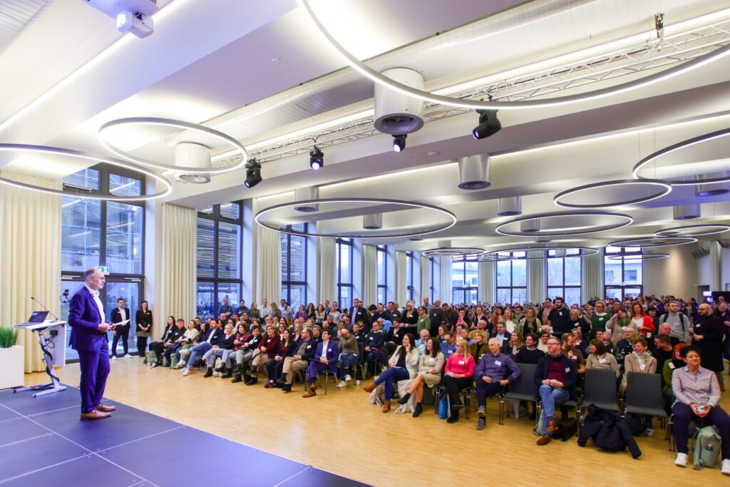 Foto (Connext): Connext-Geschäftsführer Jörg Kesselmeier begrüßt rund 1.000 Gäste beim Vivendi-Anwendertreffen in Paderborn, einem der größten Branchentreffen des Sozialwesens.