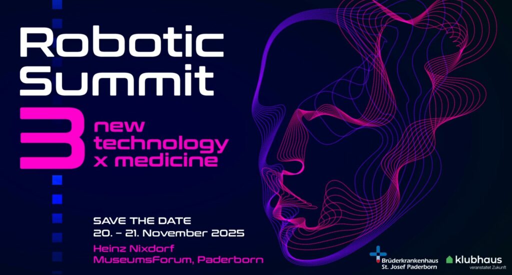 Am 20. und 21. November 2025 wird das Heinz Nixdorf MuseumsForum in Paderborn erneut zum Treffpunkt für Zukunftsmedizin. Beim dritten Robotic Summit dreht sich alles um den praktischen Einsatz von Robotik und Künstlicher Intelligenz im Gesundheitswesen; dort, wo Innovation unmittelbar wirkt: im Klinikalltag.